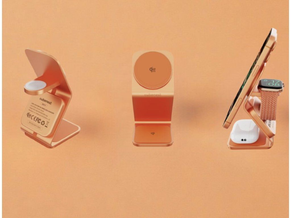 Cubenest 3v1 Qi2.2 Bezdrátová magnetická nabíječka SQ314 oranžová