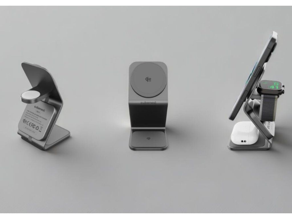 Cubenest 3v1 Qi2.2 Bezdrátová magnetická nabíječka SQ314 šedá