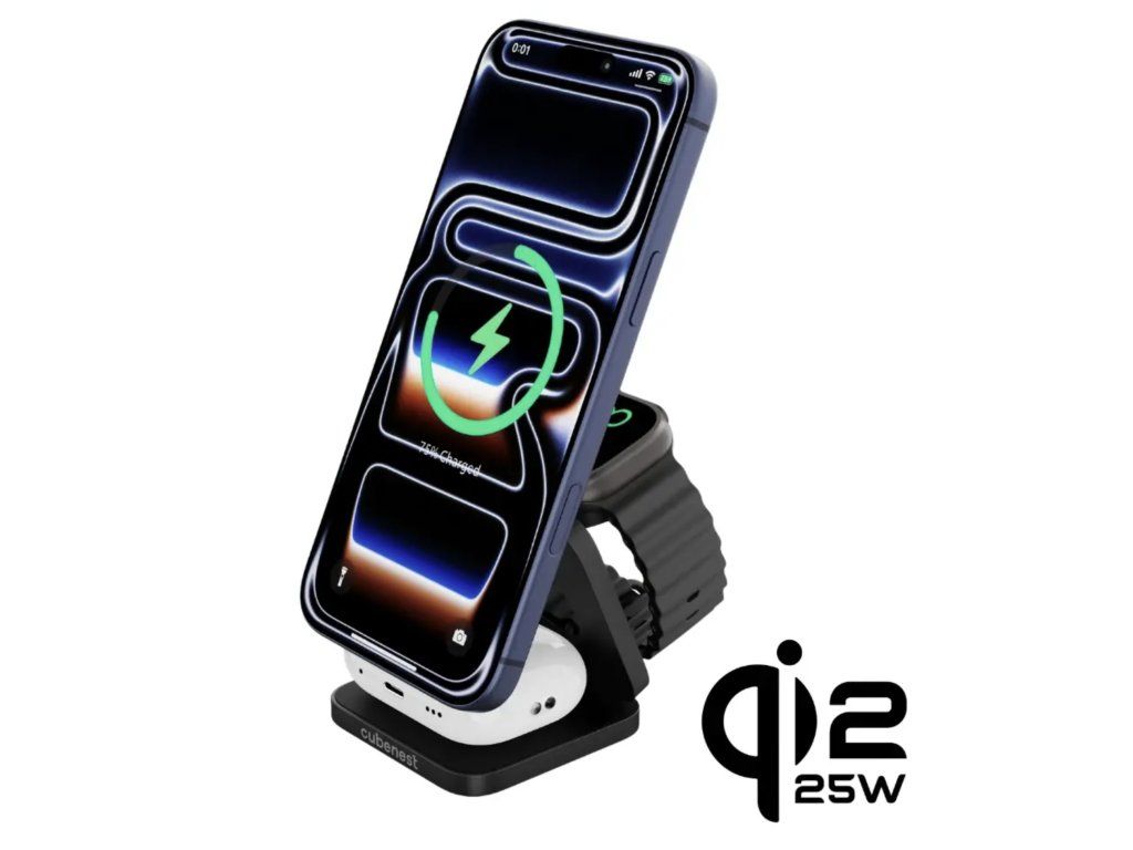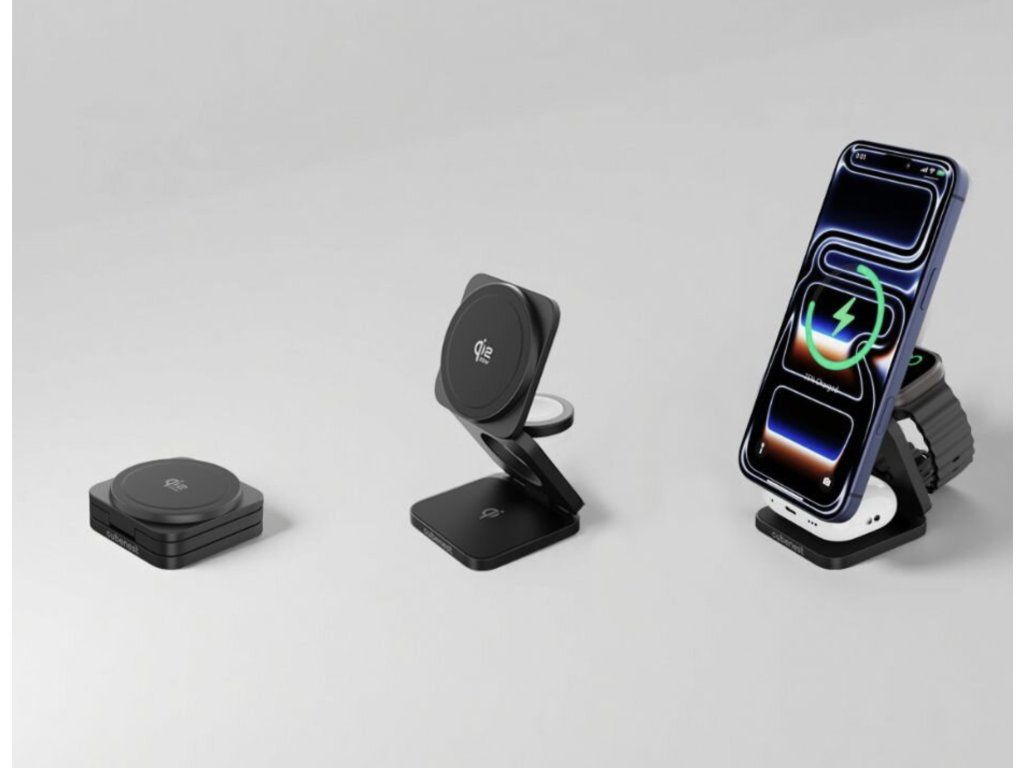 Cubenest 3v1 Qi2.2 Skládací bezdrátová magnetická nabíječka SQ312 Ultra černá