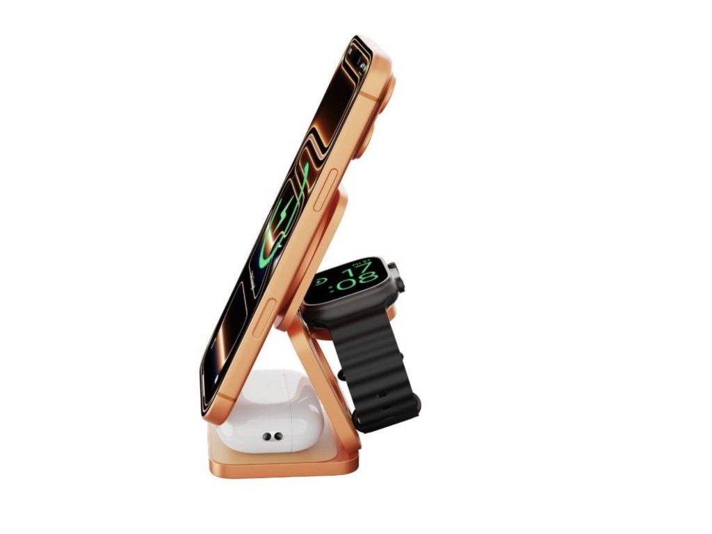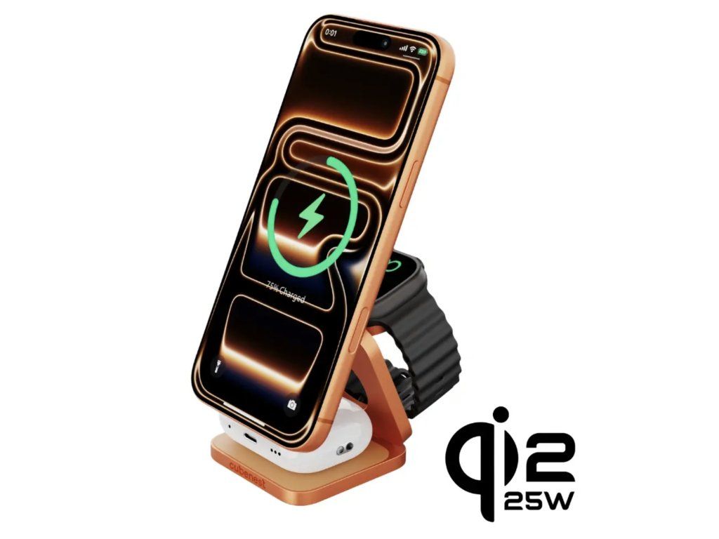 Cubenest 3v1 Qi2.2 Skládací bezdrátová magnetická nabíječka SQ312 Ultra oranžová