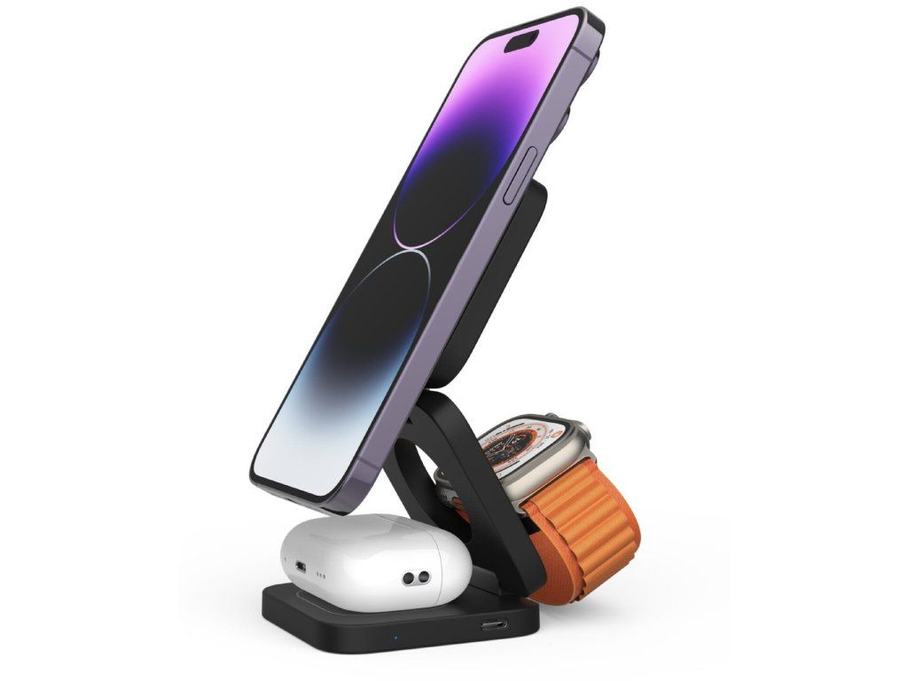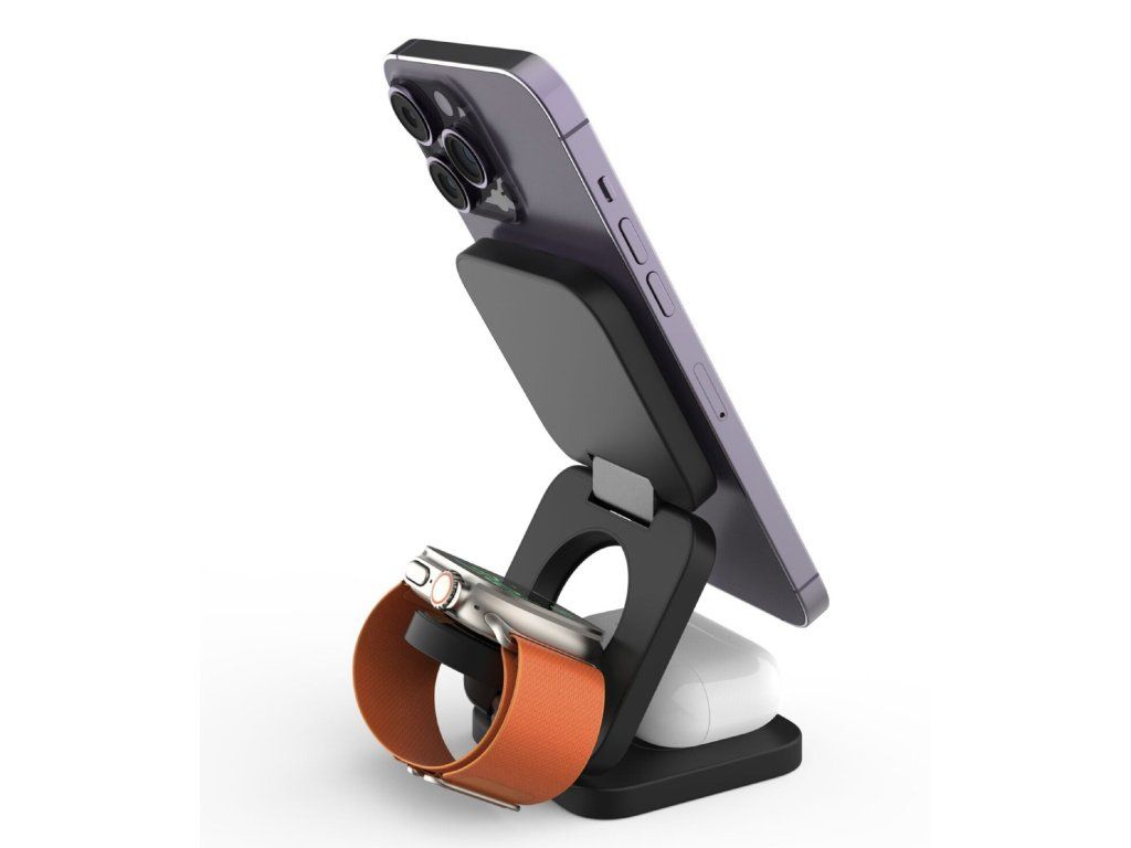 Nabíjej svůj iPhone, Apple Watch i AirPods najednou. Po skončení ji jednoduše zaklapni – ve složeném stavu není větší než tvá peněženka.