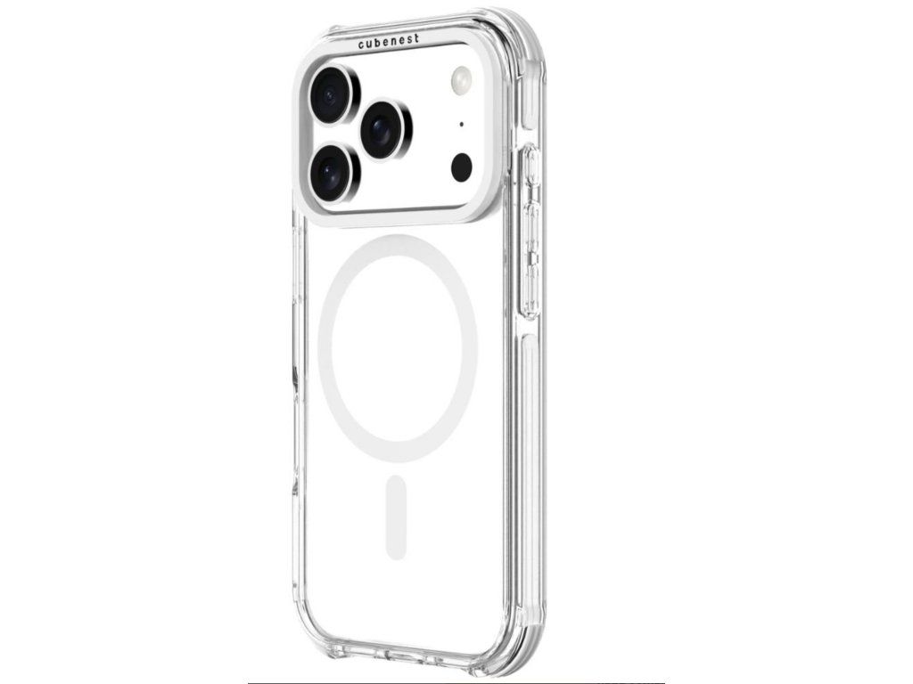 Největší displej si zaslouží tu nejlepší ochranu. Cubenest MagPro Strong Guard pro iPhone 17 Pro Max v bílém provedení kombinuje minimalistickou eleganci s extrémní odolností. Zesílená konstrukce efektivně chrání masivní tělo telefonu, zatímco stříbrné hliníkové prvky dodávají celku prémiový vzhled.