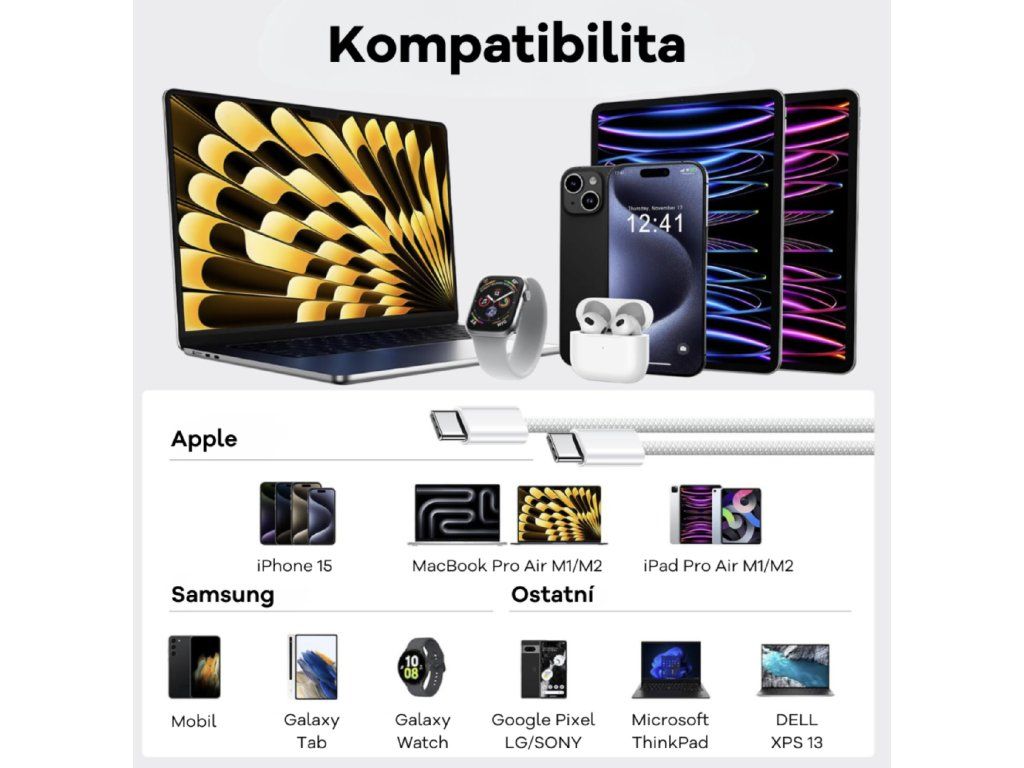 | Typ a počet | 4x kabel USB-C na USB-C |